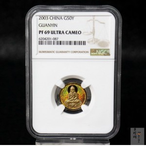 单币:2003年观音纪念币-观音像1/10盎司圆形幻彩精制金币