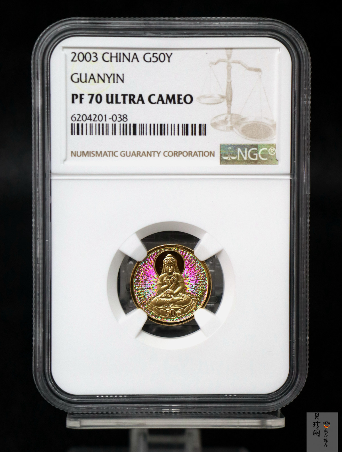 • 【031001】2003年观音纪念币-观音像1/10盎司圆形幻彩精制金币