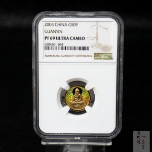 • 【031001】2003年观音纪念币-观音像1/10盎司圆形幻彩精制金币