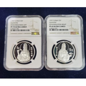 套币:1997年观音1/2盎司精制银币两枚一套