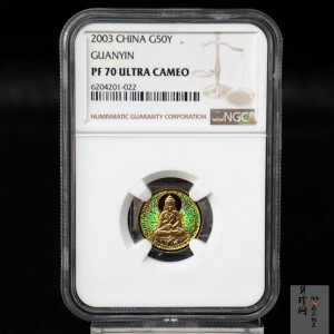 • 【031001】2003年观音纪念币-观音像1/10盎司圆形幻彩精制金币
