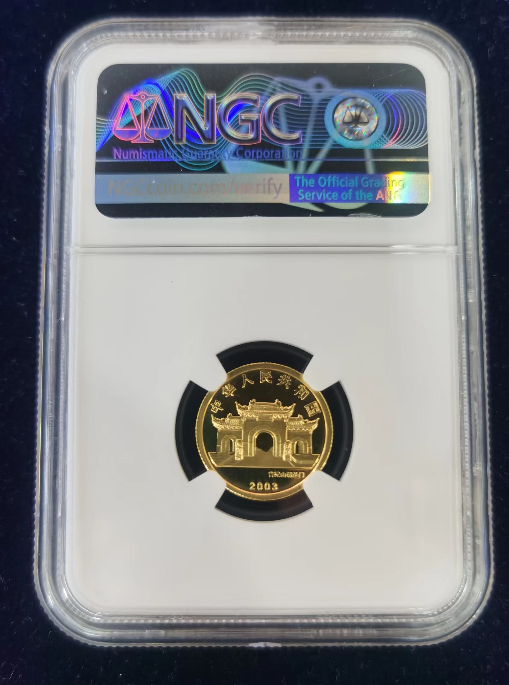 单币:2003年观音纪念币-观音像1/10盎司圆形幻彩精制金币