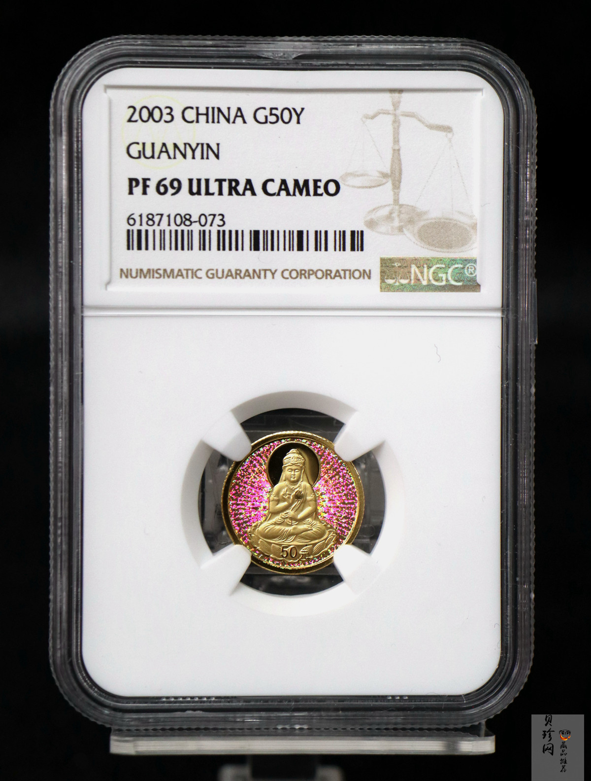• 【031001】2003年观音纪念币-观音像1/10盎司圆形幻彩精制金币