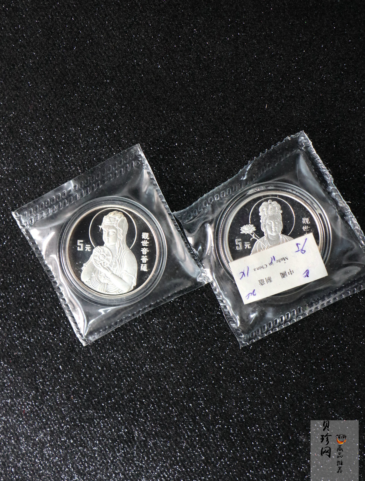 金轮观音:1995年“观音”金银纪念币背面图案的4幅图稿,均由美国天坛钱币公司刘建雄提供,清一色为善目低眉的半身法相。其中“莲花观音”图稿为正面直视,另外三款,包括郁友奎创作的“金轮观音”金银币在内,都带有一定斜度的左侧。虽大同,但小异,且各有“异”的特点与风格,再加上设计师不同的认知与不同的创作理念,最终表现出的“观音”,便有强烈的个性和不同风采。