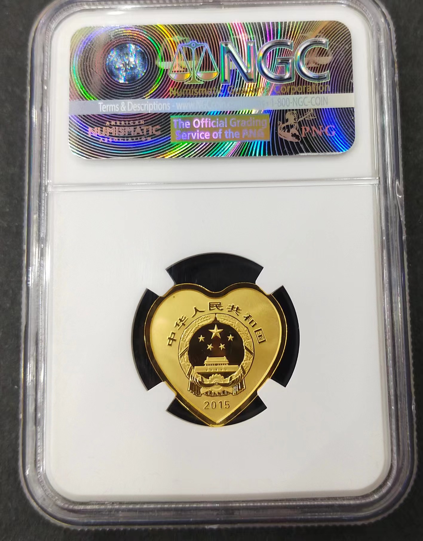 单币:2015年吉祥文化-并蒂同心1/4盎司心形精制金币