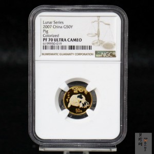 张文竞设计“中国民间剪纸生肖猪及吉祥植物装饰图案”,内环主图为民间艺术造型的“生肖”,外环为中华传统花卉纹饰。主图“丁亥猪”取的是剪纸艺术形式。早前,“2004中国甲申(猴)年”金银币正面图案,剪纸也有采用,两者相比,“猴”以机警而夺目,而“猪”则以拙朴而引入。这一版币品画面浑厚中有细腻,纤巧中带着淳朴,让人爱不释手。