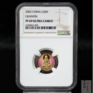 • 【031001】2003年观音纪念币-观音像1/10盎司圆形幻彩精制金币