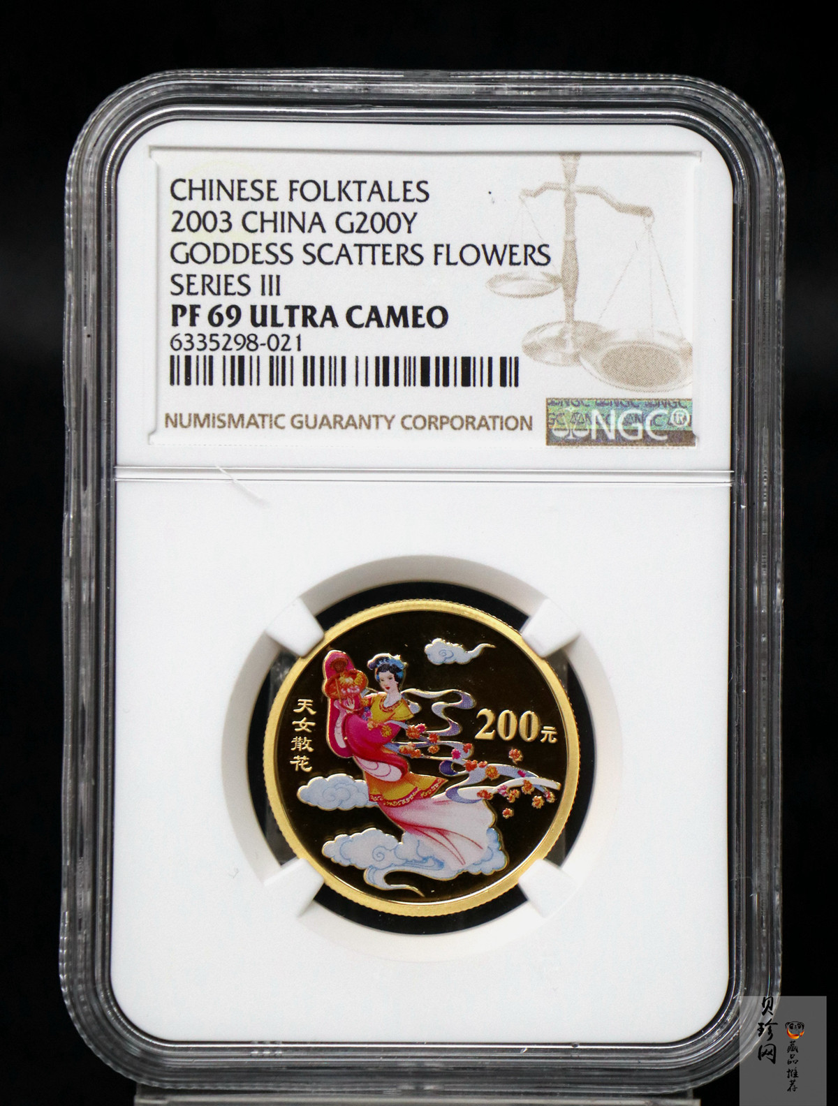 【030501】2003年中国民间神话故事彩色金纪念币(第3组)-天女散花1/2盎司彩色精制金币