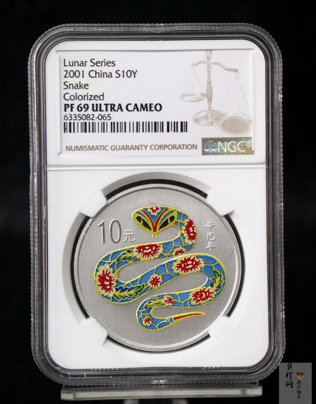【010208】2001中国辛巳(蛇)年金银纪念币-彩蛇图1盎司彩色精制银币