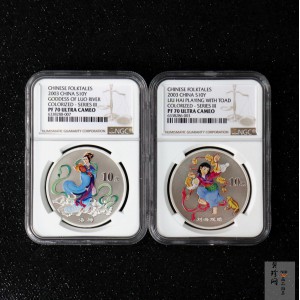 套币:2003年中国民间神话故事(第3组)1盎司彩色精制银币2枚一套