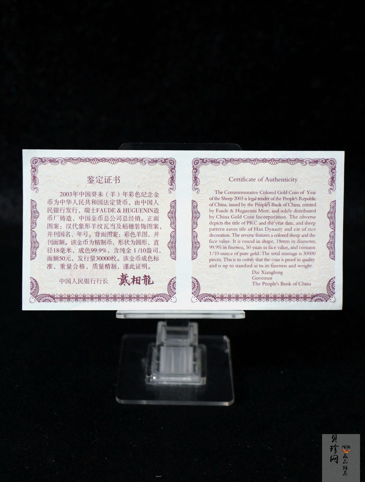 【030205】2003中国癸未(羊)年金纪念币1/10盎司彩色精制金币