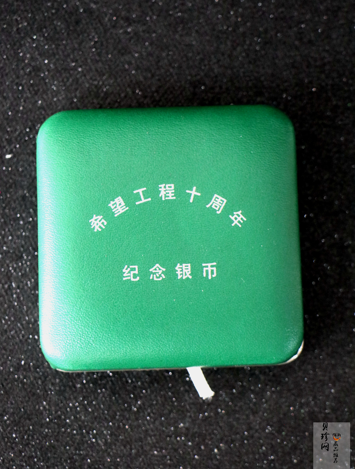 该币的背面图案设计以写实手法表现了“希望工程”的一角,建设“希望小学”作为“希望工程”的宗旨之一,在该银币上得到了生动地表现。其最为感人之处便是塑造了一群朝气勃勃的孩子形象,让人深感国家“希望工程”的重要性和对贫困山区孩子的点滴关爱。