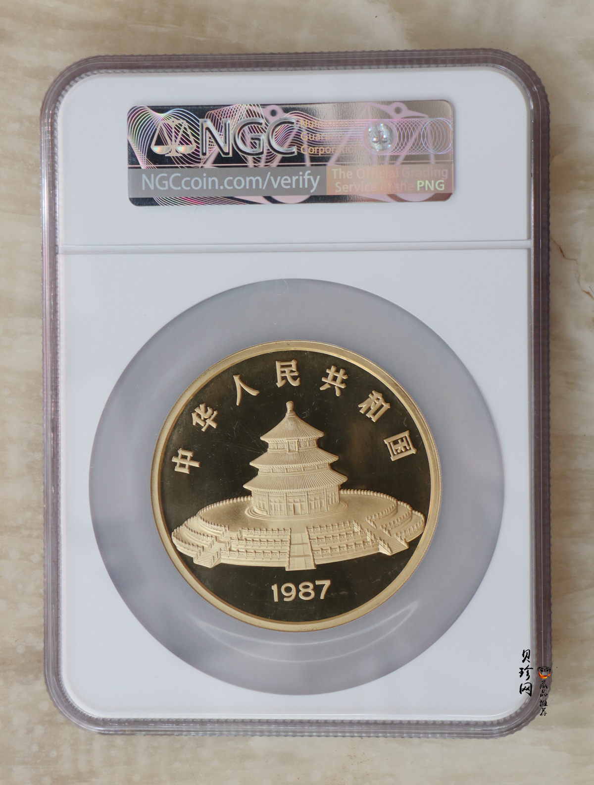 《货币贵族——中国现代贵金属纪念币》一书中提到,1987版“熊猫”币在生产工艺上创造了两个第一:一个是首次采用贵金属铂发行了一枚圆形的1盎司精制“熊猫”铂币,填补了中国金银纪念币的材料品种的空白,给钱币收藏界增添了一股新贵;另一个是在该年版“熊猫”金币上首次标注生产厂家的符号,篆刻于“熊猫”图案的右下方。