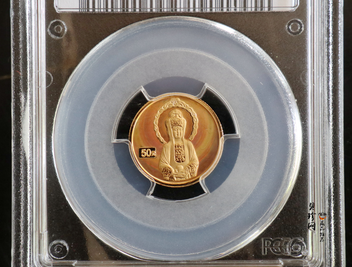 单币:2004年观音金纪念币-白衣观音像1/10盎司幻彩精制金币