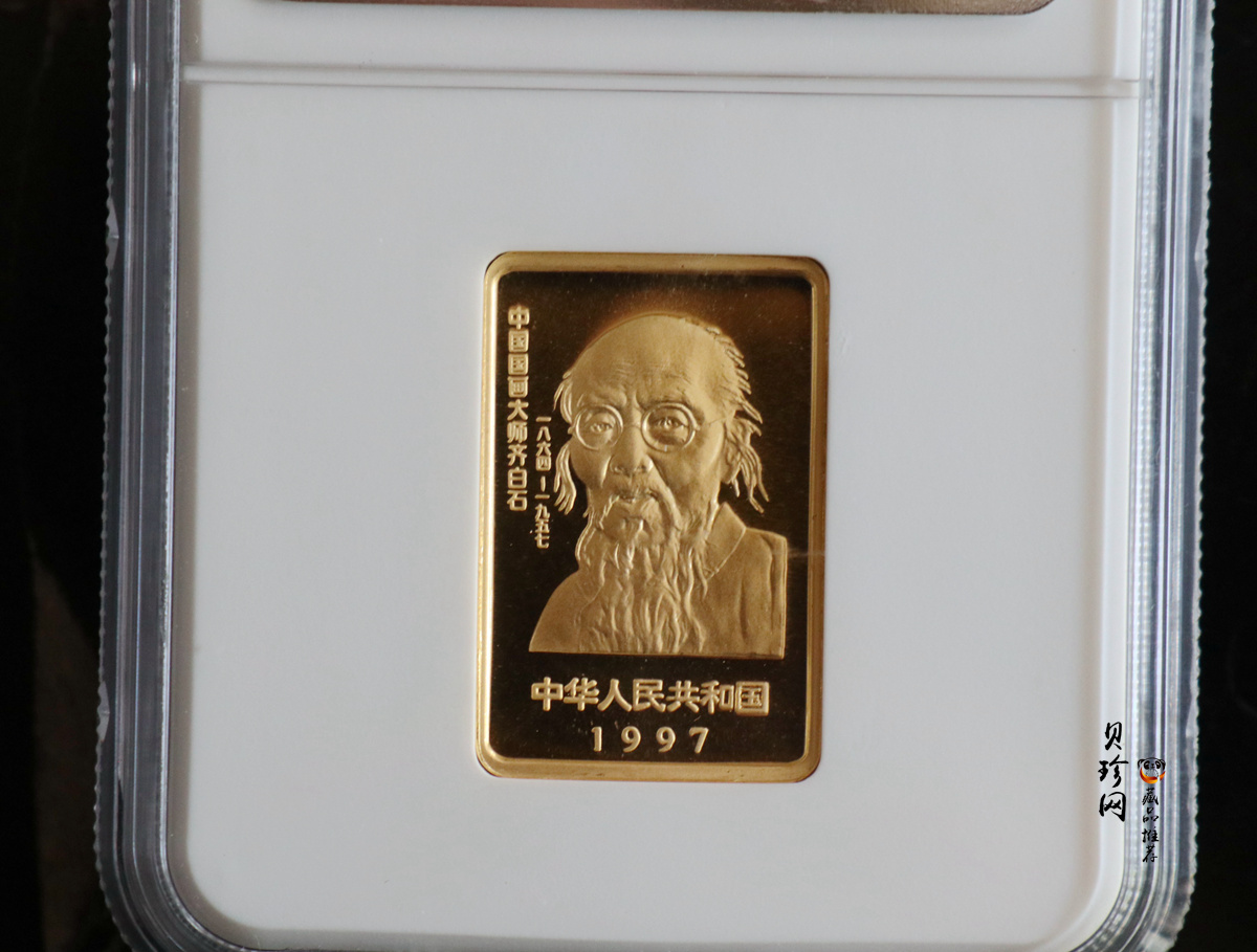 齐白石金银币中的1/2盎司金币和1盎司银币背面图案选取的是“松鼠葡萄图”,币面上的葡萄藤蔓枝叶紧凑有致,一串硕果垂挂其中,藤下一对松鼠,正用灵巧的前爪各抱一颗葡萄,弓身屈背人快朵颐,趣味盎然。