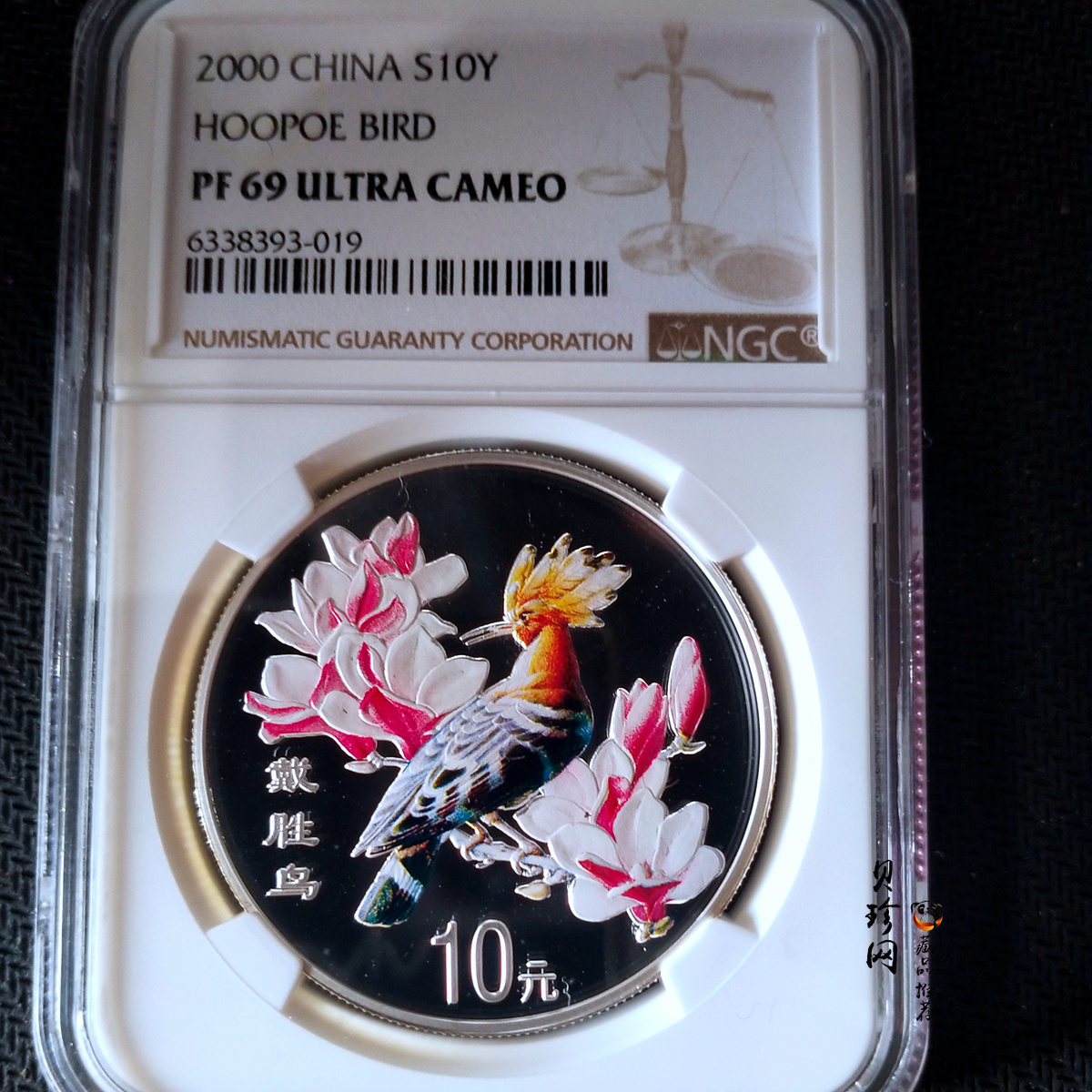 单币:2000年中国珍禽系列(戴胜鸟)彩色金银纪念币1盎司彩色精制银币