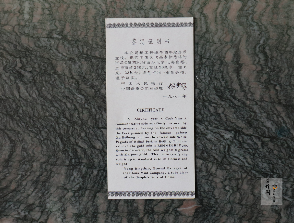 【810101】1981中国辛酉(鸡)年-雄鸡图8克精制金币