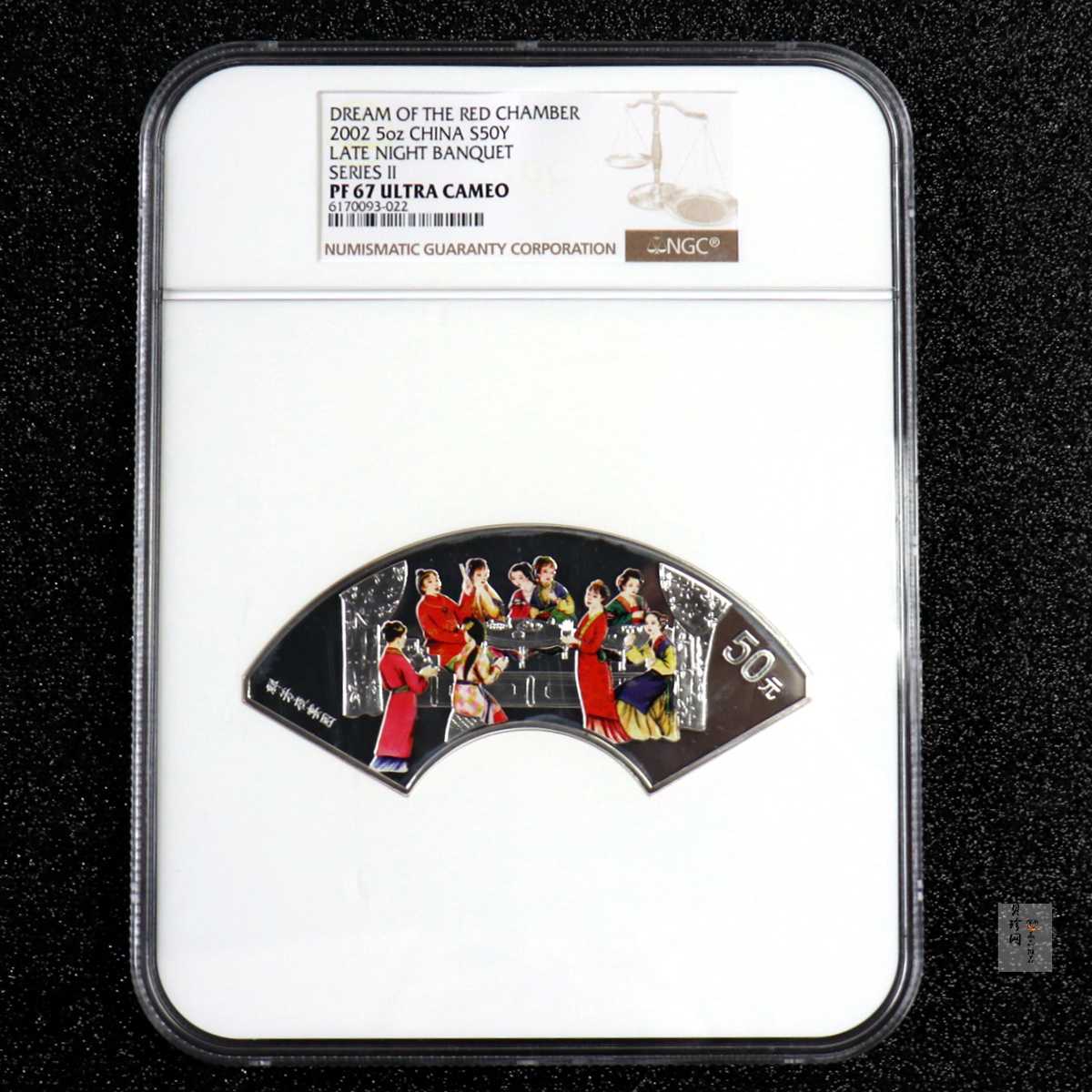 单币:2002年中国古典文学名著——《红楼梦》彩色金银纪念币(第二组)-群芳夜宴5盎司彩色精制银币