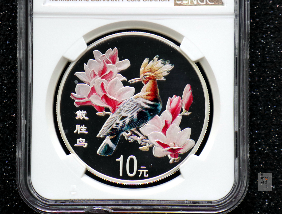 单币:2000年中国珍禽系列(戴胜鸟)彩色金银纪念币1盎司彩色精制银币