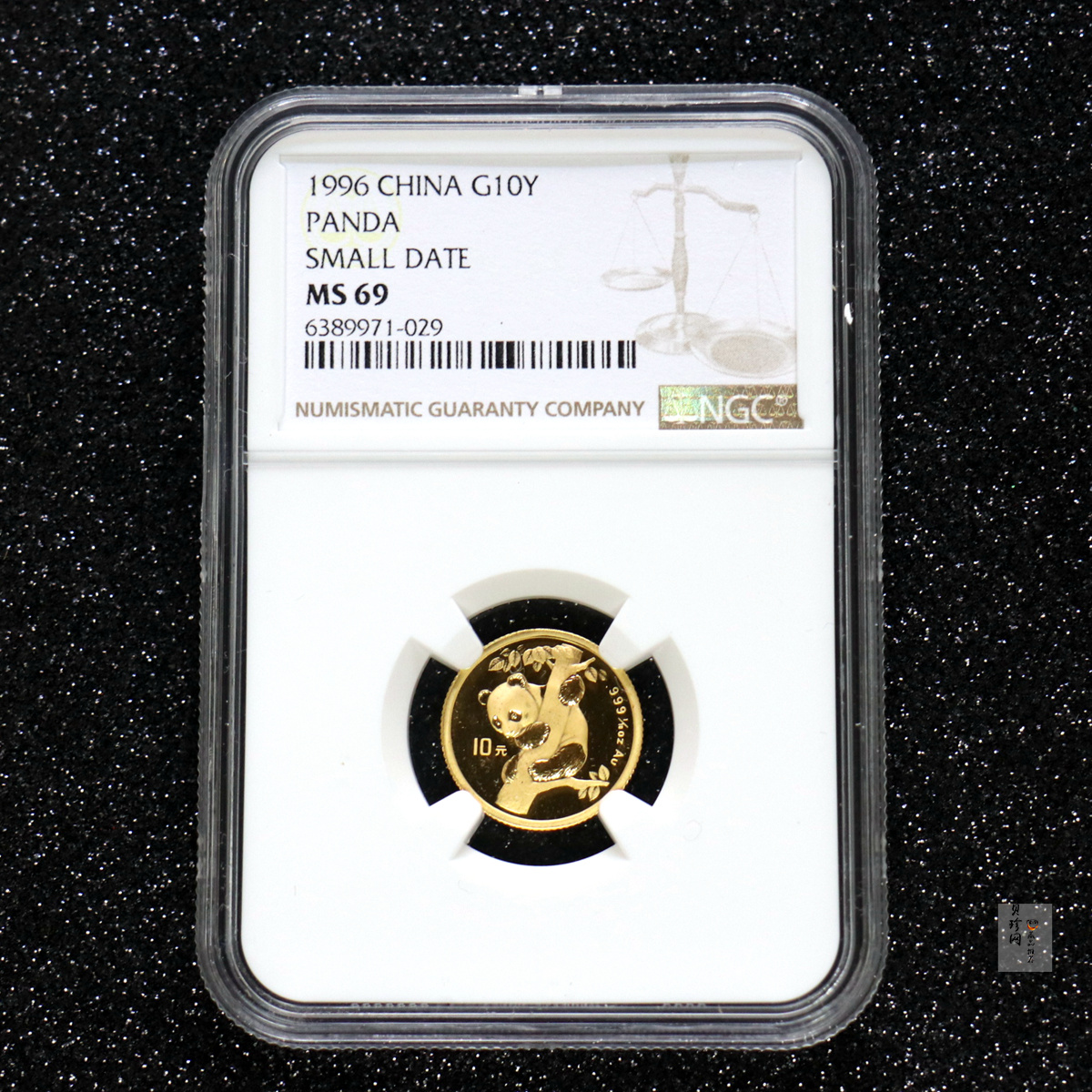单币:1996版熊猫金纪念币1/10盎司普制金币