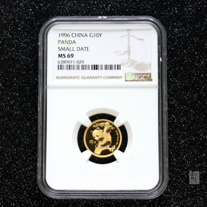 • 【963333】1996版熊猫金纪念币1/10盎司普制金币