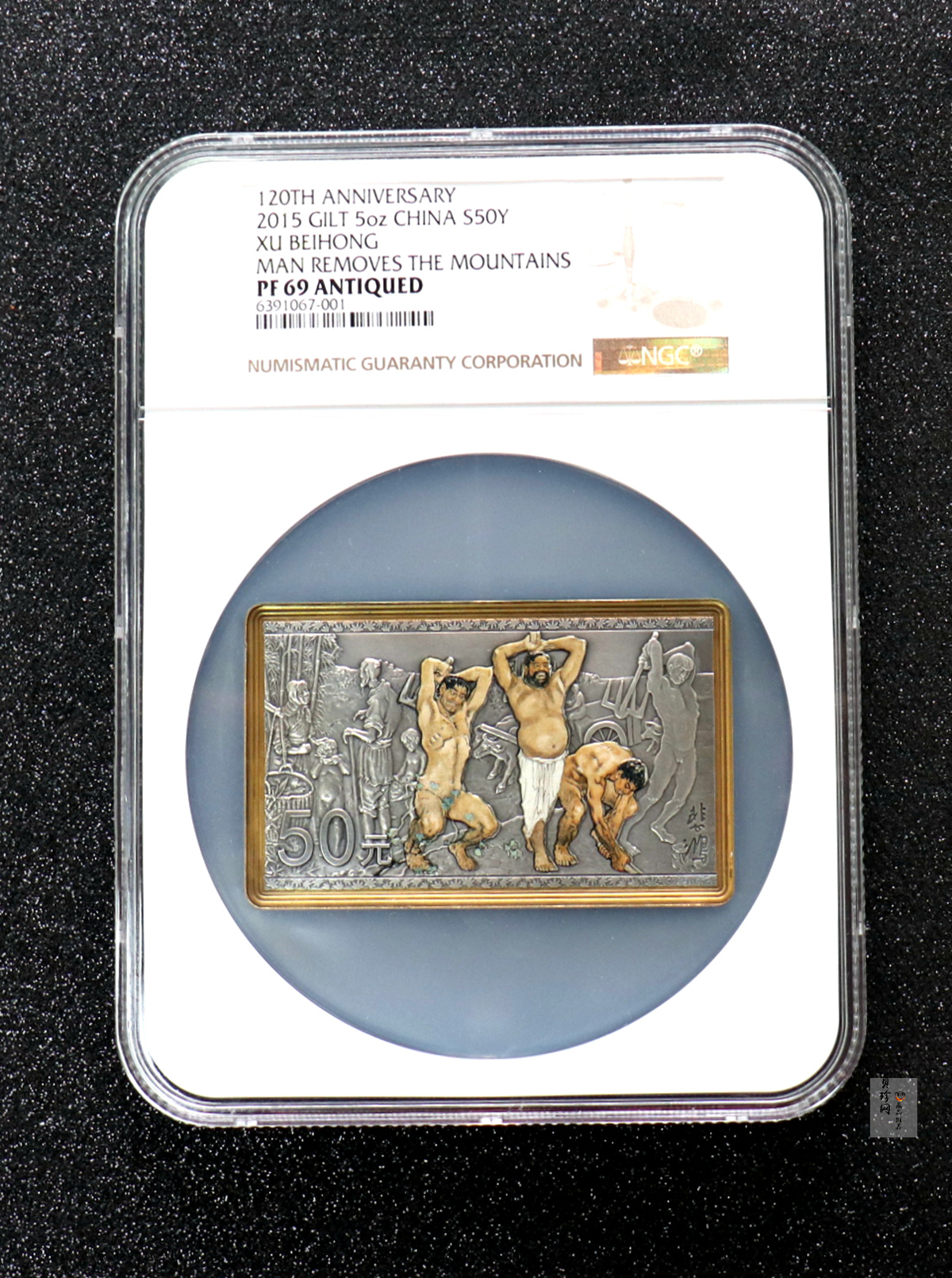 • 【150403】2015年近代国画大师徐悲鸿-愚公移山图5盎司长方形精制银币