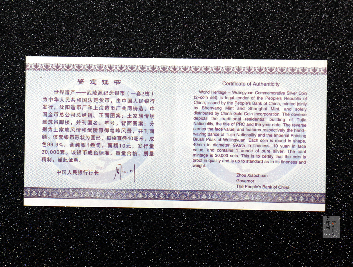 套币:2003年世界遗产-武陵源纪念1盎司银币两枚一套