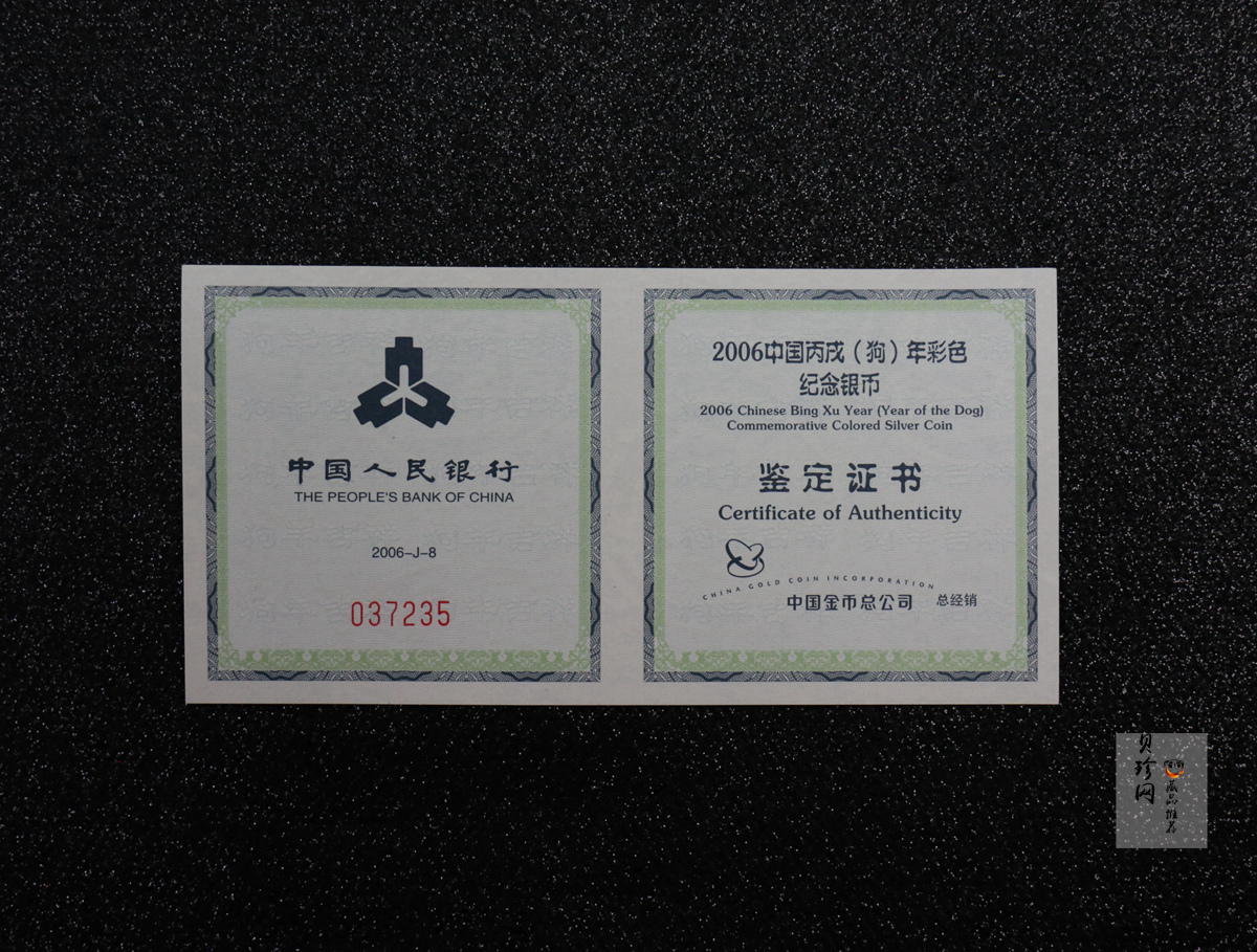 【060209】2006年丙戌狗年生肖1盎司精制彩银币
