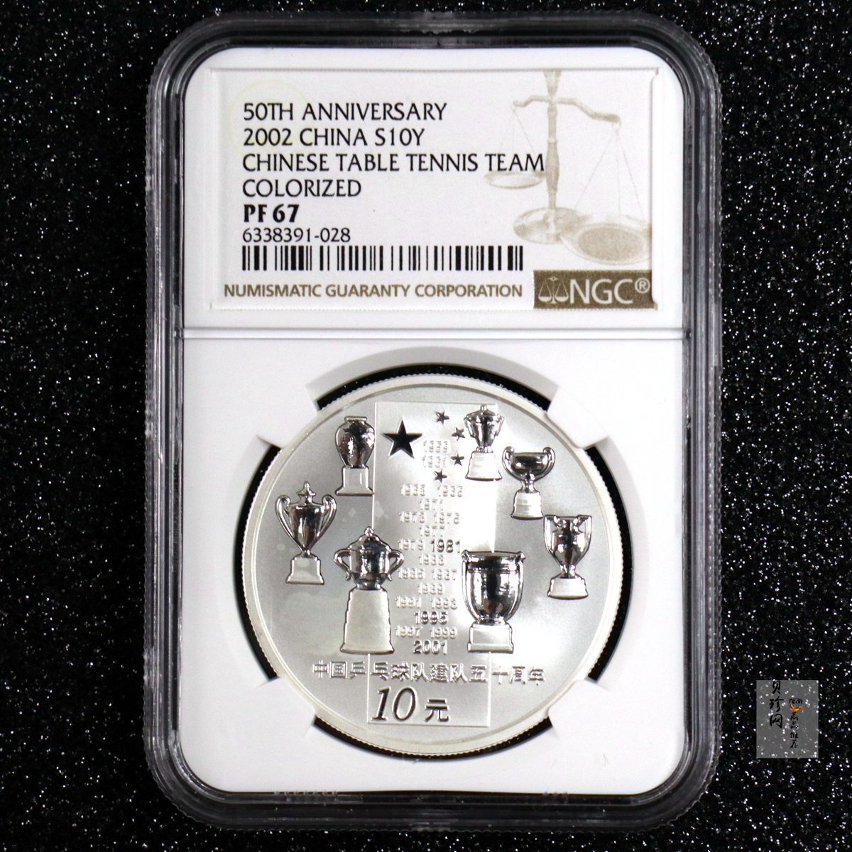 • 【021101】2002年中国乒乓球队建队50周年纪念银币1盎司精制银币