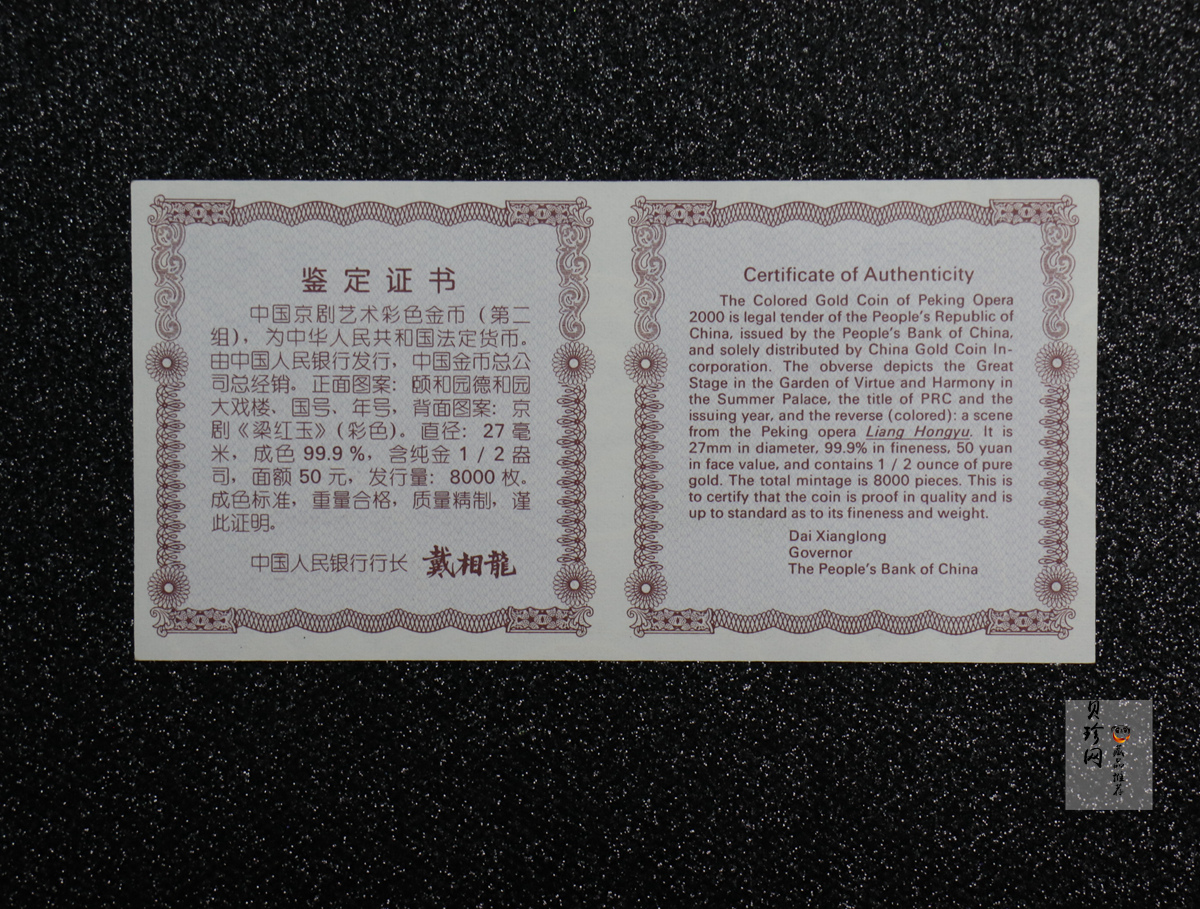【011001】2001年中国京剧艺术彩色金银纪念币(第3组)-群英会1/2盎司彩色精制金币
