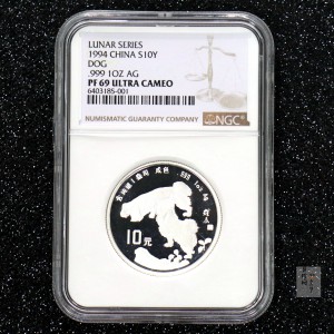 单币:1994中国甲戌狗(狗)1盎司精制银币