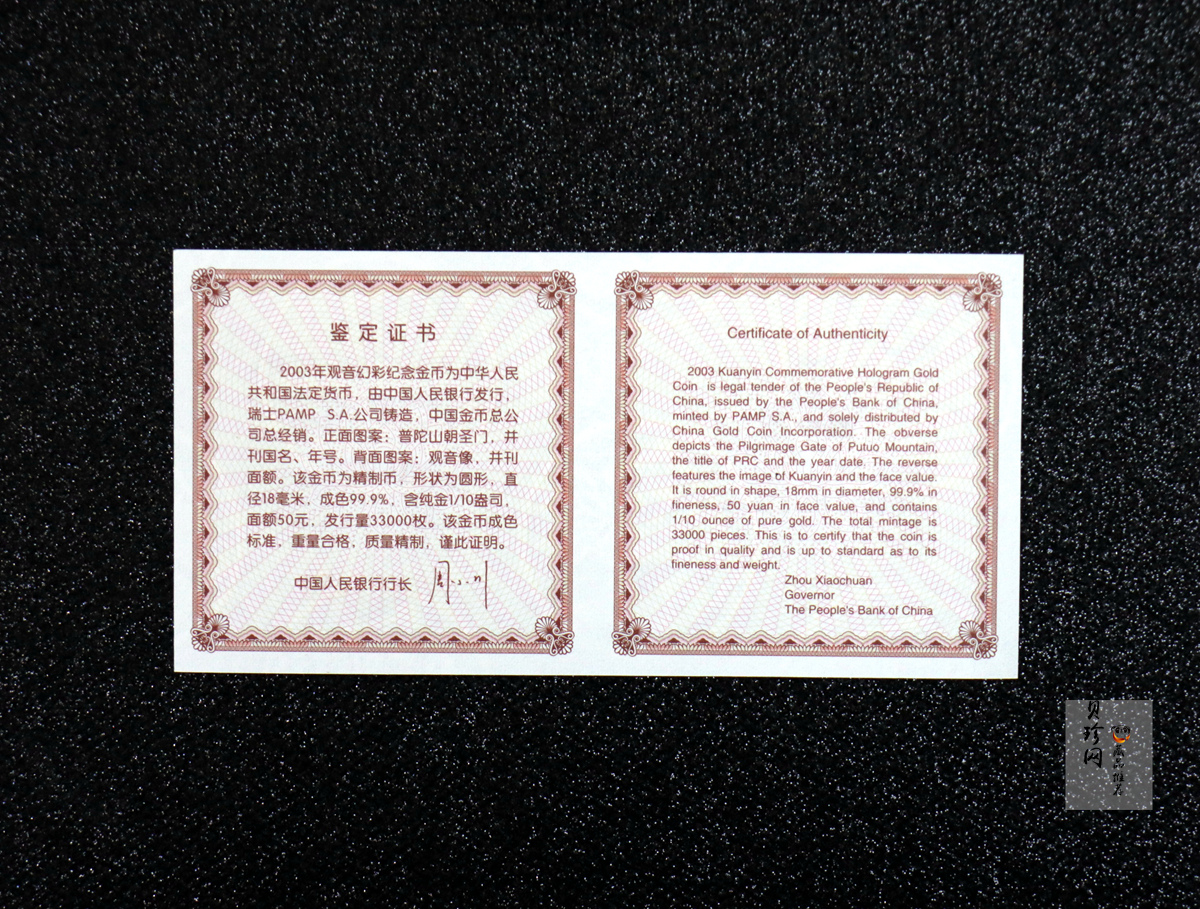 • 【031001】2003年观音纪念币-观音像1/10盎司圆形幻彩精制金币