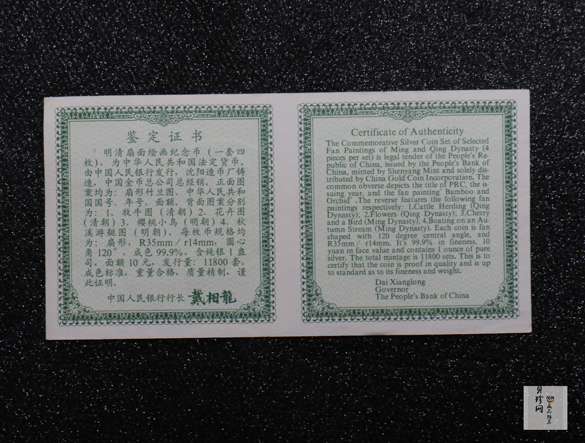 【999651】1999年明清扇画纪念精制银币四枚一套