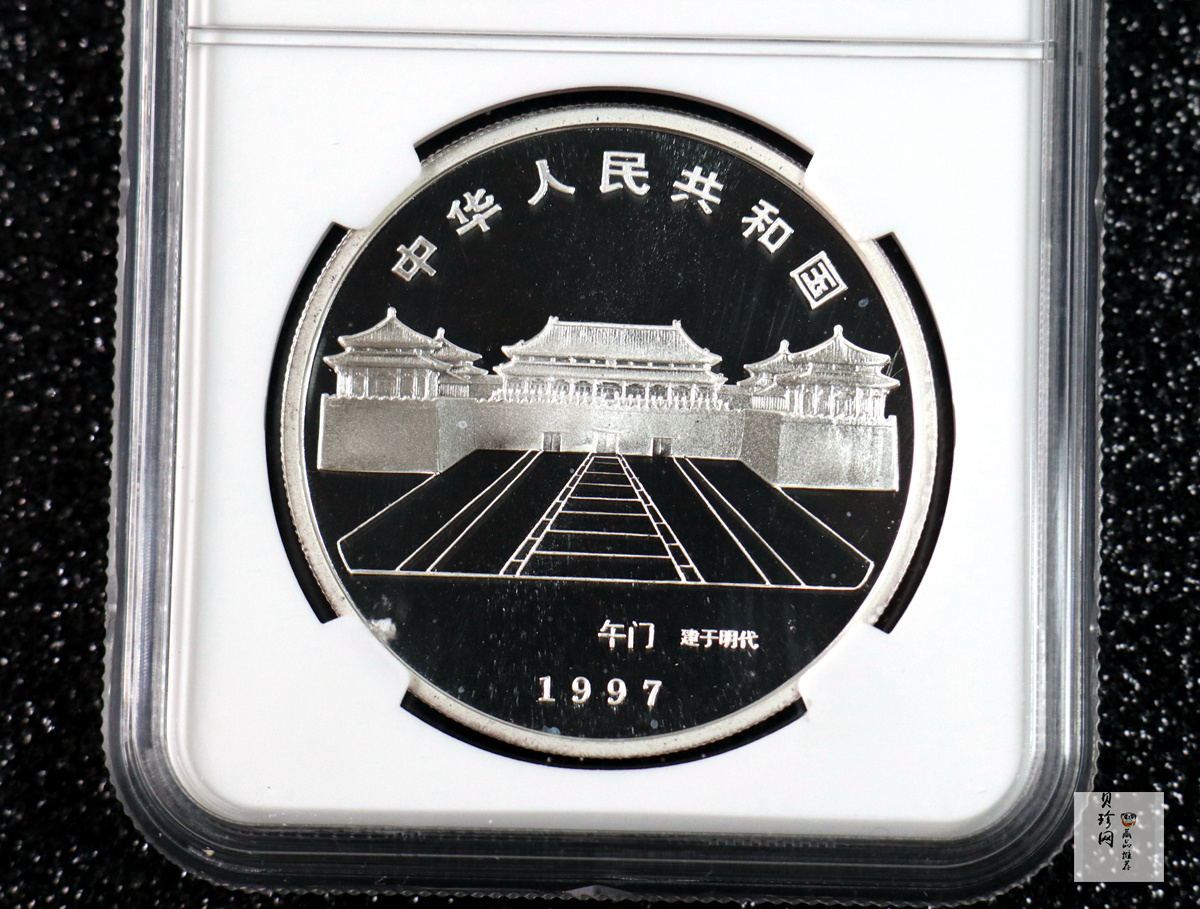 1997年,中国人民银行以“北京故宫博物院”为主题,发行了一套金银纪念币。包括1/4盎司金币(四枚)、1/10盎司金币、1盎司银币(五枚)。故宫是世界上现存最大最完整的古代宫殿建筑群,是人类珍贵的文化遗产。所以“北京故宫博物院”金银纪念币将表现内容主要放在了故宫的建筑上面,主要表现了故宫午门、金水桥、乾清宫、乾清宫内景、御花园以及铜狮等一系列具有代表性的建筑。
