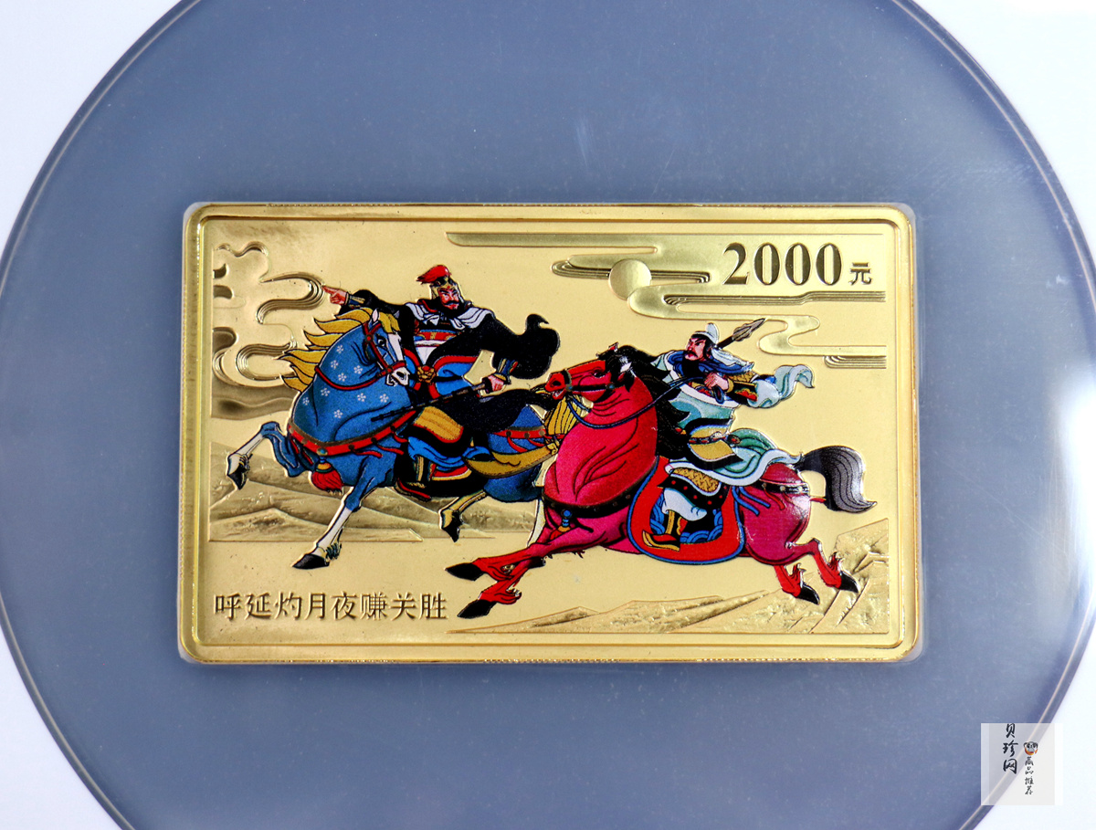 可能也正因如此,我在具体设计这枚金币的时候,把关胜放在了欣赏的全视野之下,以完整的形象展现于观赏者眼前。再加之以赤兔马、淡青色长袍、乌巾朱履、粉朱面庞、美髯顺垂、凤目有神,手提青龙偃月刀,塑造其不凡的仪表,以描摹关圣之遗风。当然,这并不是抄袭“武圣关公”。关胜,人称“天勇星”大刀关胜,位列梁山马军五虎将第一。因此,金币上的关胜形象类关羽是有道理的。