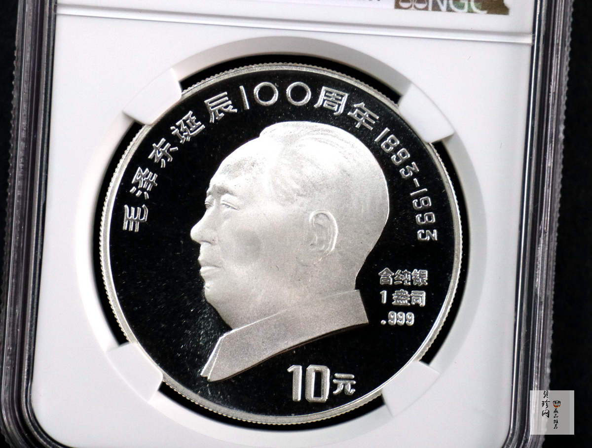 • 【939340】1993年毛泽东诞辰100周年-毛泽东肖像1盎司普制银币