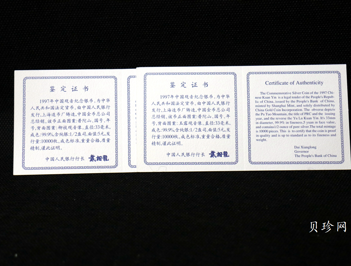 • 【979630】1997年观音1/2盎司精制银币两枚一套