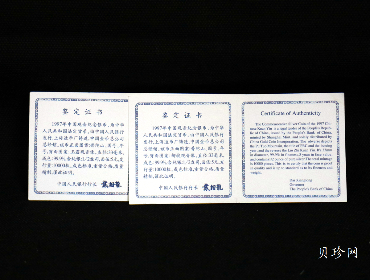 • 【979630】1997年观音1/2盎司精制银币两枚一套