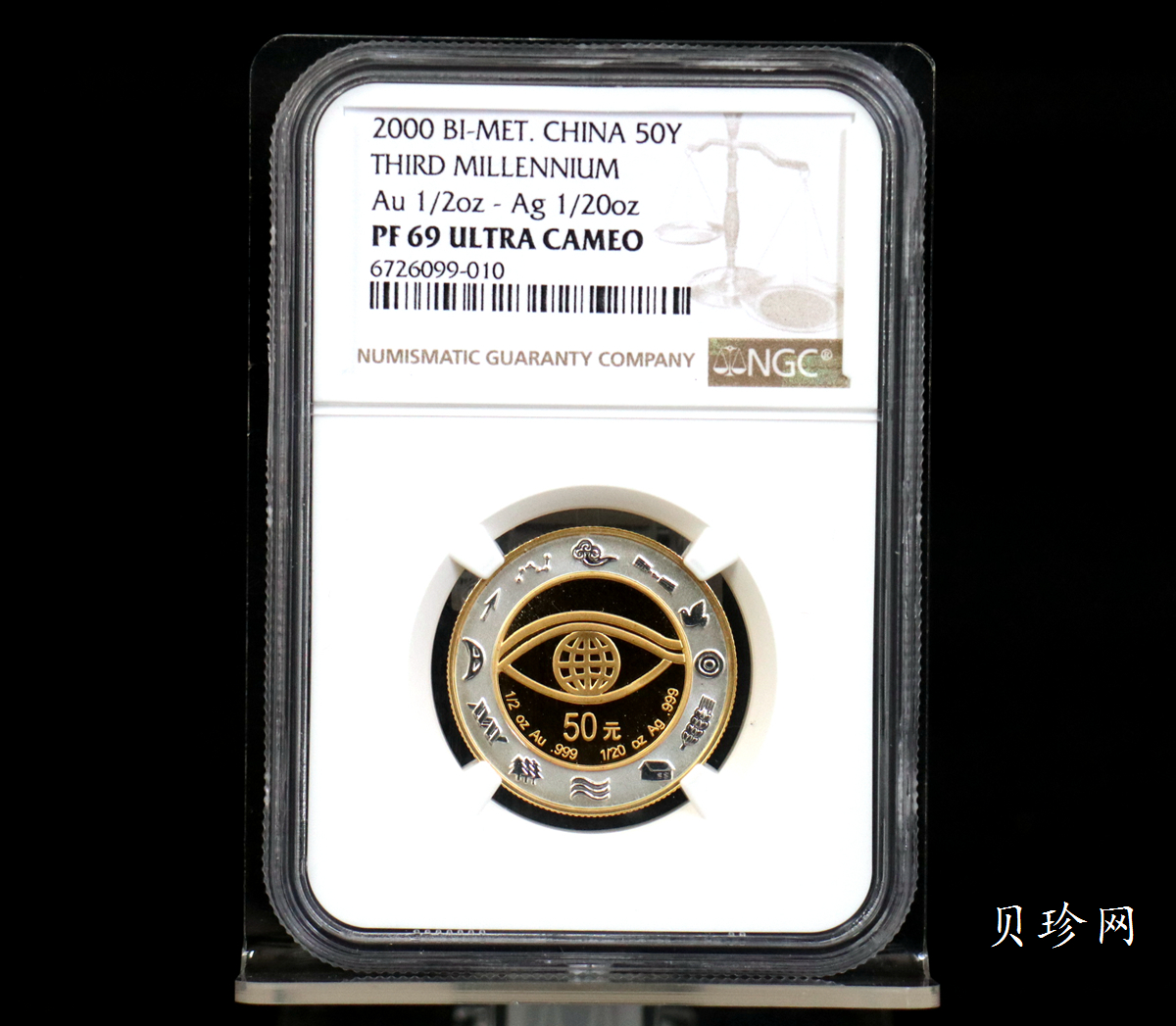 【000607】2000年千年纪念金银及双金属纪念币1/2+1/20盎司精制双金属币