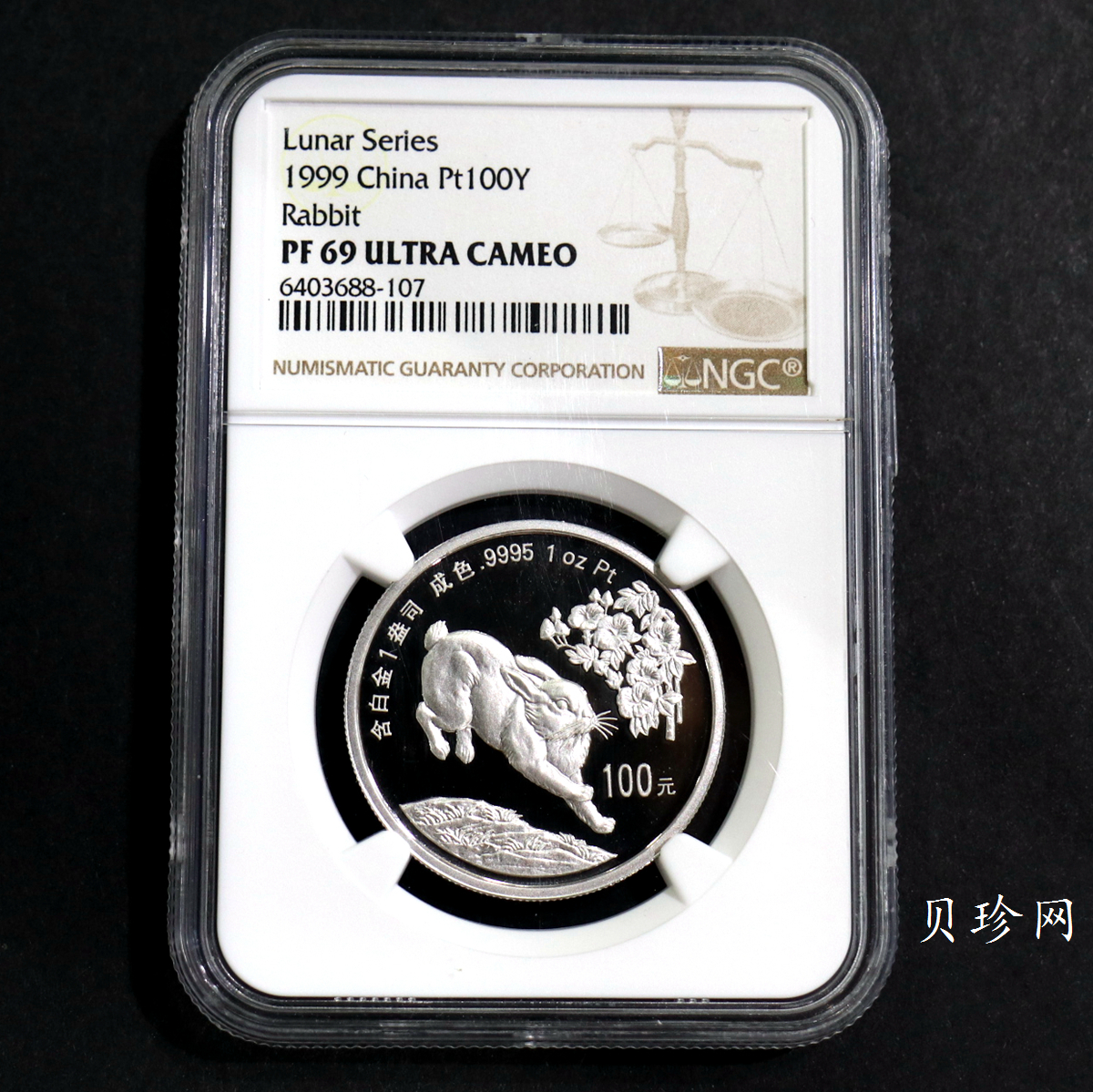 • 【999930】1999年中国己卯(兔)年金银铂纪念币-奔兔1盎司精制铂币