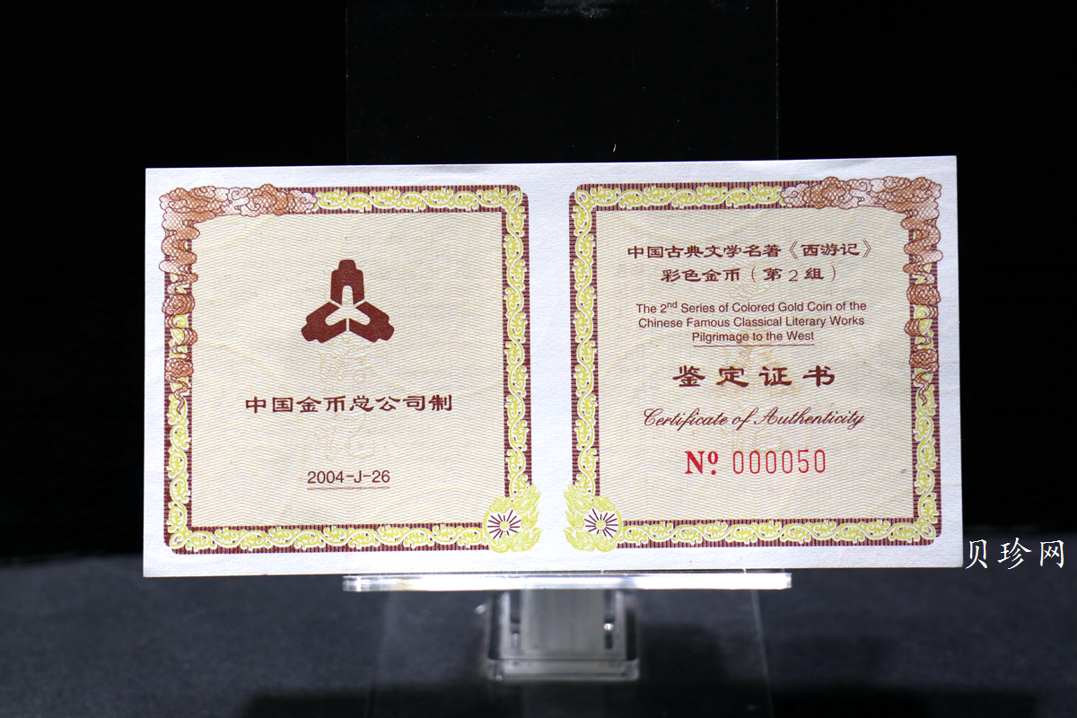 • 【040502】2004年中国古典文学名著——《西游记》彩色金纪念币(第2组)1/2盎司彩色精制金币