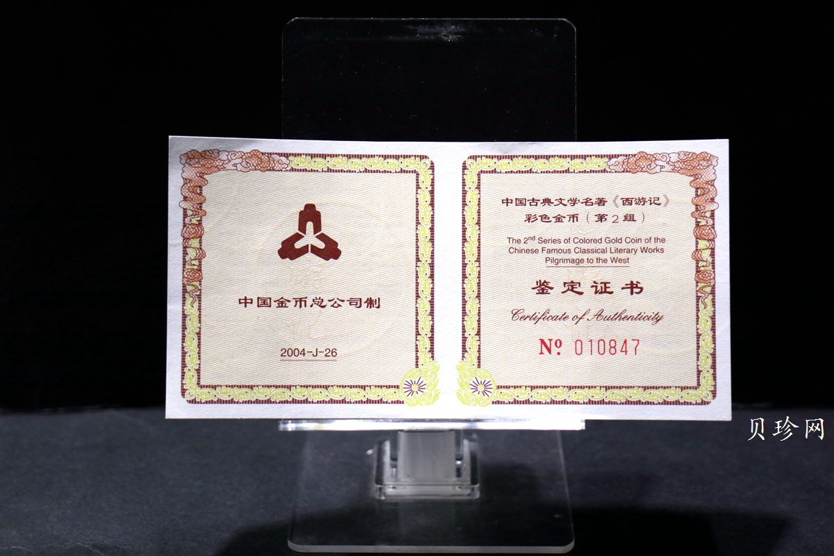 • 【040502】2004年中国古典文学名著——《西游记》彩色金纪念币(第2组)1/2盎司彩色精制金币
