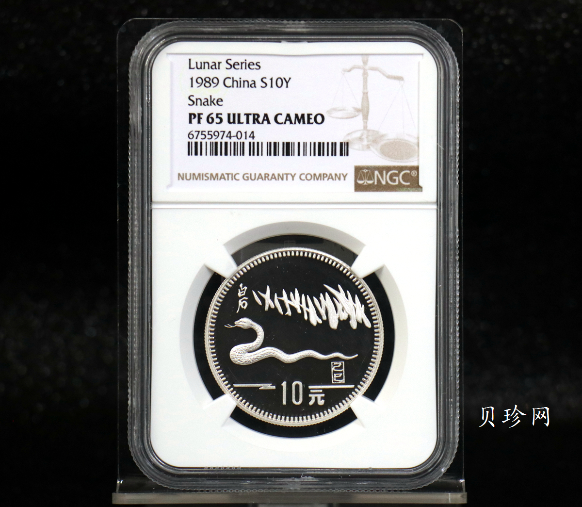 1989“中国己巳(蛇)年”金银铂纪念币的两幅正面图案,其中之一取景山海关。蛇的形态与长城类似,天下第一关,正是蜿蜒万里的长城蛇头。币面取景又是天下第一关的箭楼,以箭楼之高大气势,强调“天下第一关”特殊的地理位置。
