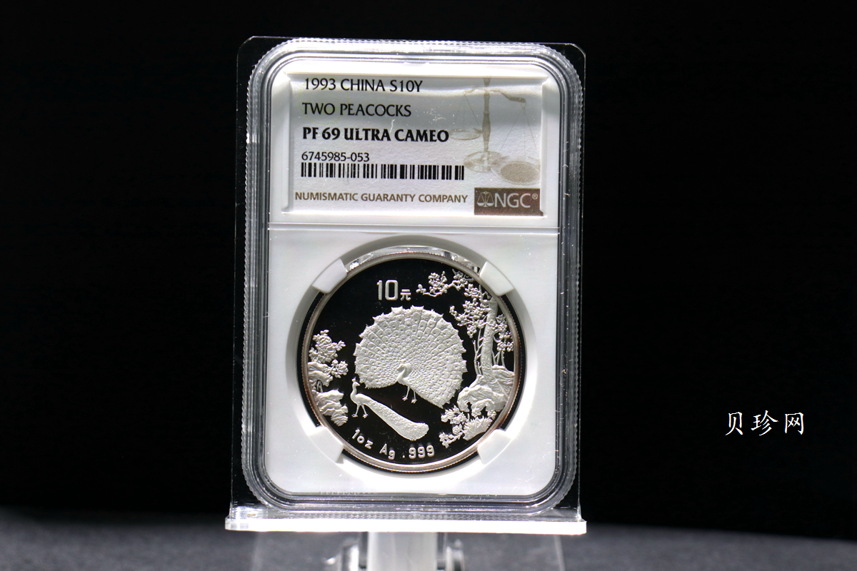 单币:1993年中国古代名画系列(孔雀开屏)1盎司精制银币