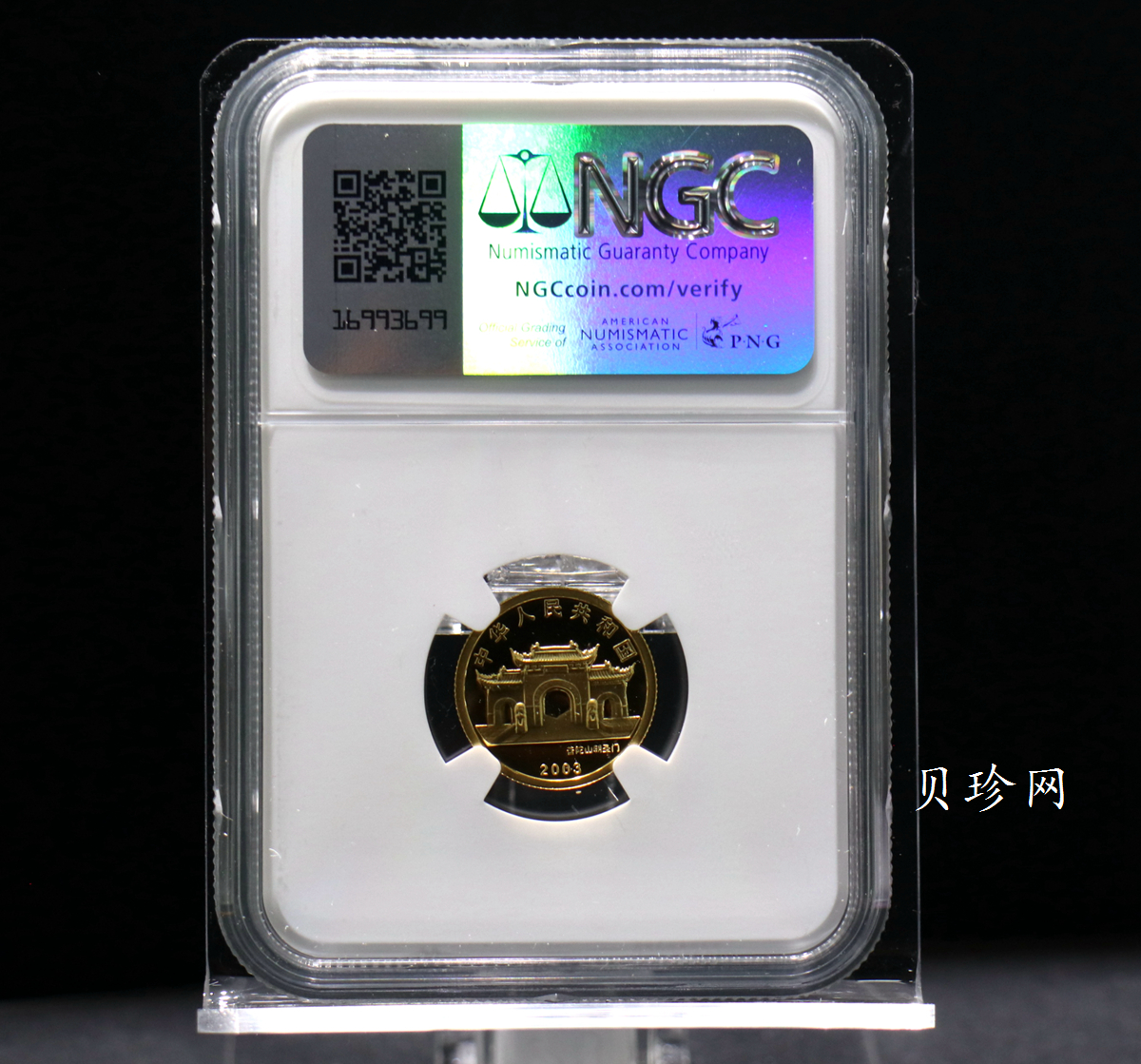 单币:2003年观音纪念币-观音像1/10盎司圆形幻彩精制金币