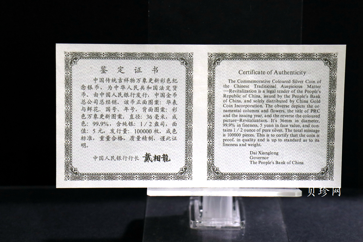 • 【981004】1998年中国传统吉祥图(万象更新)金银纪念币1/2盎司彩色精制银币