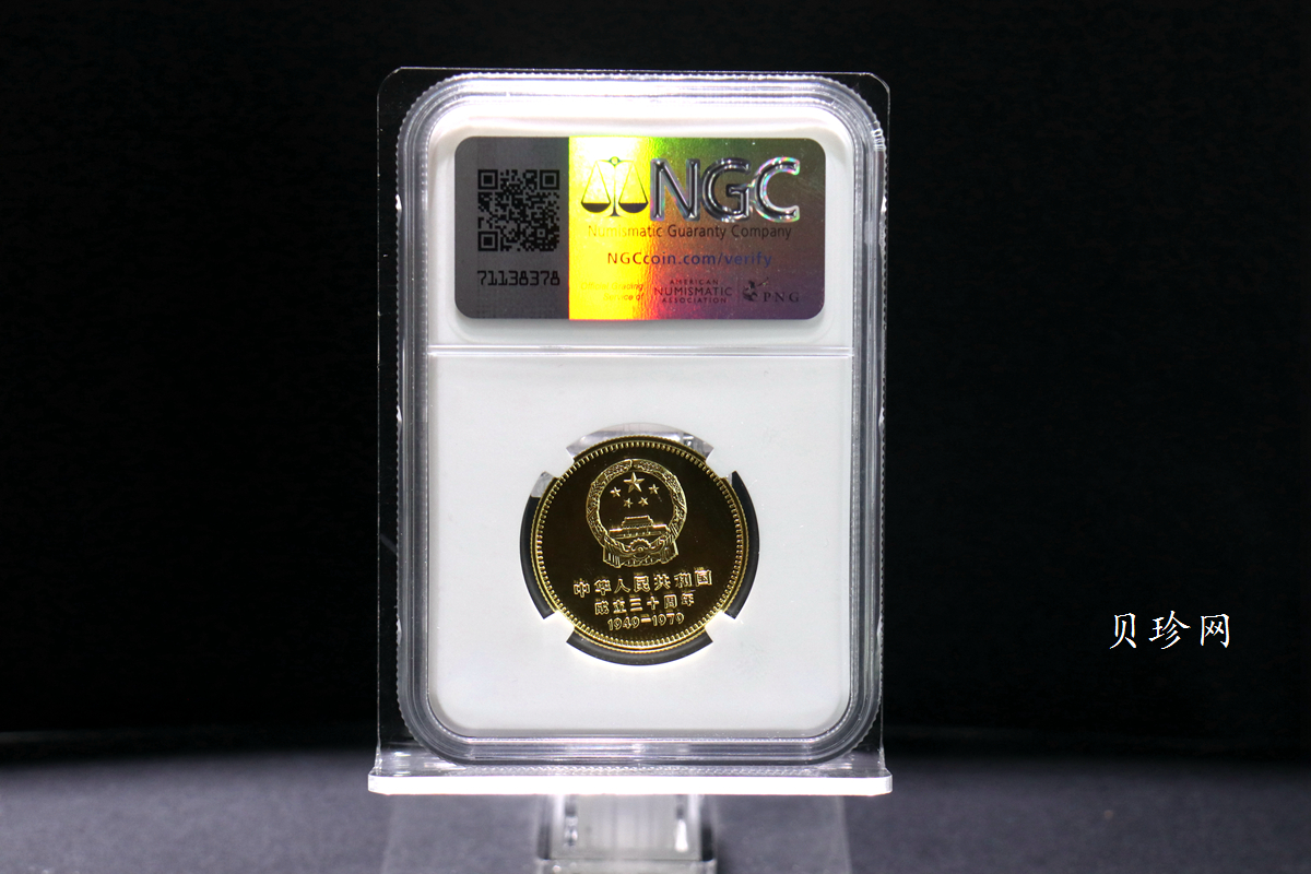 单纯、简洁是中华人民共和国第一套现代贵金属币暨中国现代贵金属币中“建国”系列的开山之作,也是“中华人民共和国成立30周年”纪念金币的主要艺术特征。纪念金币画面上的建筑形象稳重大气,挺拔简练,没有过多的装饰,涌动着颂扬新中国的主旋律。在它身上,我们看到了20世纪70年代末80年代初鲜明的思想印记和独特的艺术追求。庄严肃穆的建筑形象蕴含了当时中国的国家力量,单纯简洁的构图体现出深厚的时代背景,表现出对中国人民共和国成立30周年国家发展、社会变革的伟大赞颂与深情贯注。虽然那时候的金币设计简单,甚至可以说是有些单调,但其中赋予的情感却是弥足珍贵的,显示了中国现代钱币文化在它刚刚诞生之初的素朴审美取向,与特定时代的文化心理息息相通。