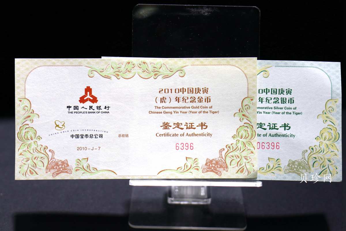 • 【109030】2010年庚寅虎年生肖梅花形精制金银币2枚一套