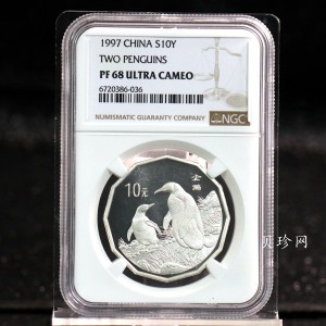 【979430】1997年中国近代名画系列金银纪念币(第3组)-企鹅图2/3盎司十二边形精制银币