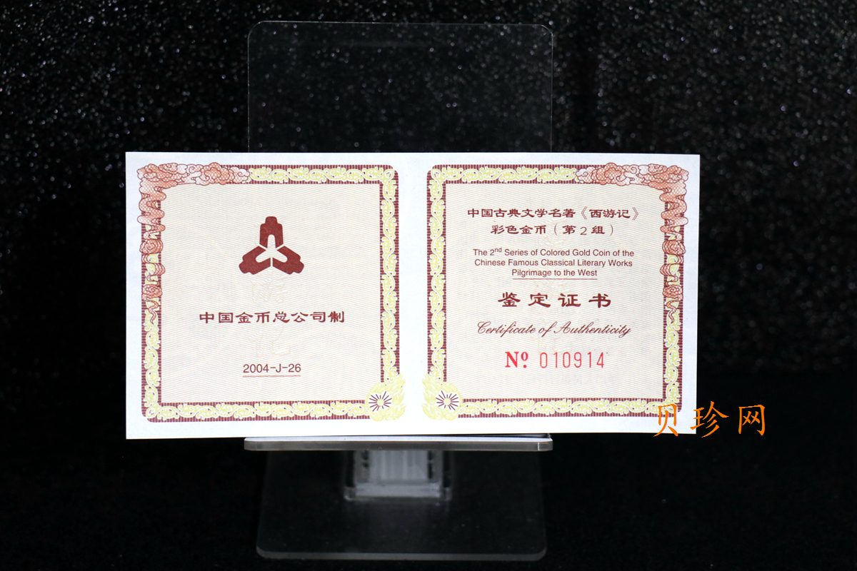 • 【040502】2004年中国古典文学名著——《西游记》彩色金纪念币(第2组)1/2盎司彩色精制金币